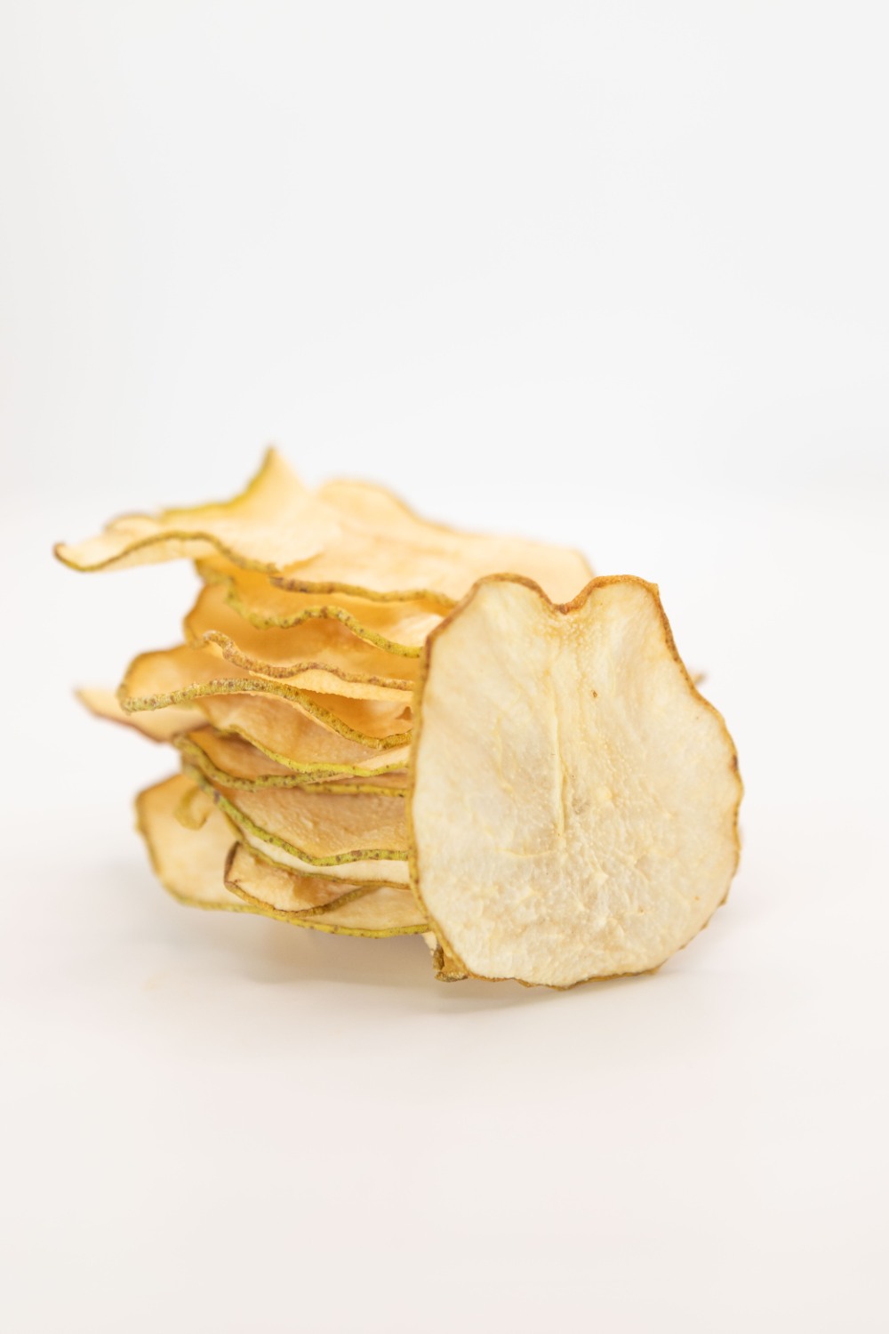 La pera essiccata a freddo può essere gustata al naturale, come spuntino pratico e genuino, oppure utilizzata per arricchire muesli, porridge, yogurt e insalate di frutta secca. È perfetta come ingrediente in barrette artigianali, torte, crostate, biscotti, o come decorazione naturale per dolci al cucchiaio. Reidratata in acqua tiepida o tè, può essere impiegata anche in composte, infusi, mangia-e-bevi o preparazioni salate gourmet.