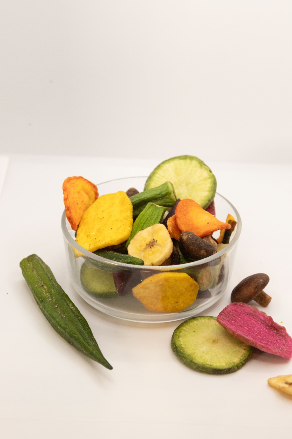 Queste chips miste sono ideali come spuntino salutare in qualsiasi momento della giornata, dall’aperitivo leggero alla pausa lavoro. Possono accompagnare insalate, piatti unici o essere servite come guarnizione croccante a vellutate e secondi piatti. Ottime anche come alternativa alle classiche patatine, regalano varietà di sapori e consistenze che soddisfano ogni palato.