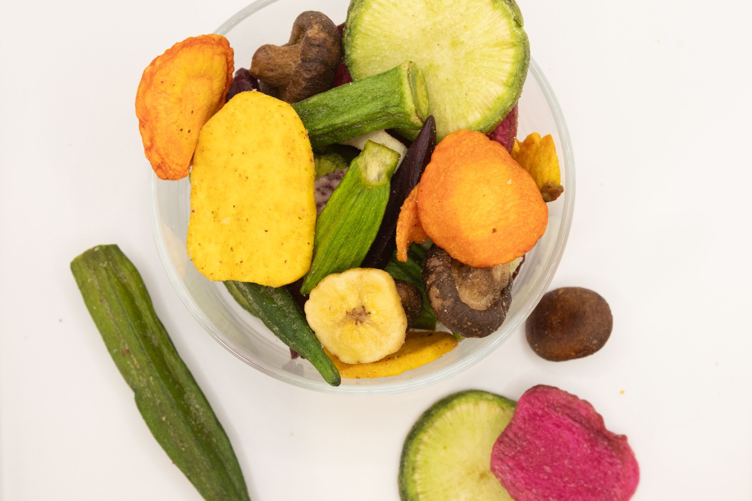 Le Verdure Chips Complete Sguscio rappresentano un mix equilibrato e genuino di ortaggi e frutta selezionati, croccanti e leggeri. Carota, patata, ravanello, barbabietola, patata viola, funghi shiitake, okra, patata dolce e banana vengono delicatamente essiccati e resi croccanti grazie a una lavorazione attenta che preserva gusto e colore. Un’alternativa sfiziosa e naturale agli snack tradizionali, perfetta per chi desidera coniugare bontà e benessere.